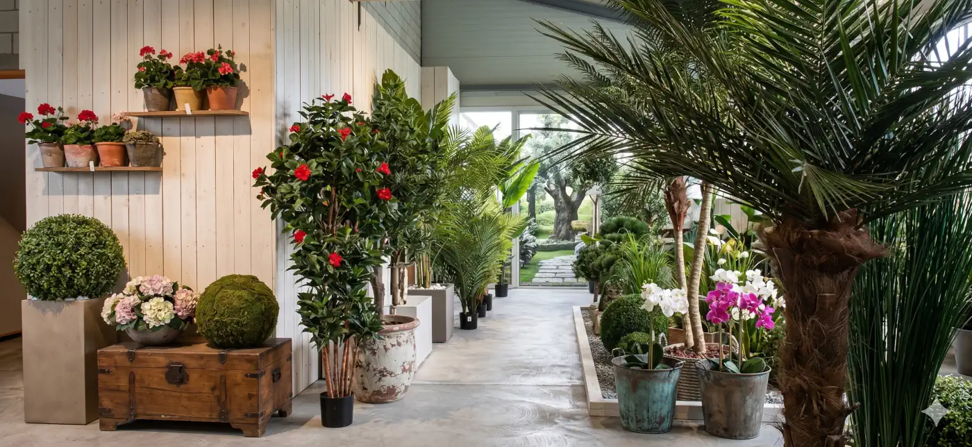 Egal ob heimische Terrasse, gemütlicher Garten oder professionelle Business-Umgebungen wie Ladengeschäfte und Eventlocations: Unsere Kunstpflanzen sind die ideale Wahl. Von der mediterranen Palme am Swimmingpool bis zur eleganten Blumendekoration im Entrée stehen Ihnen alle Gestaltungsmöglichkeiten offen.