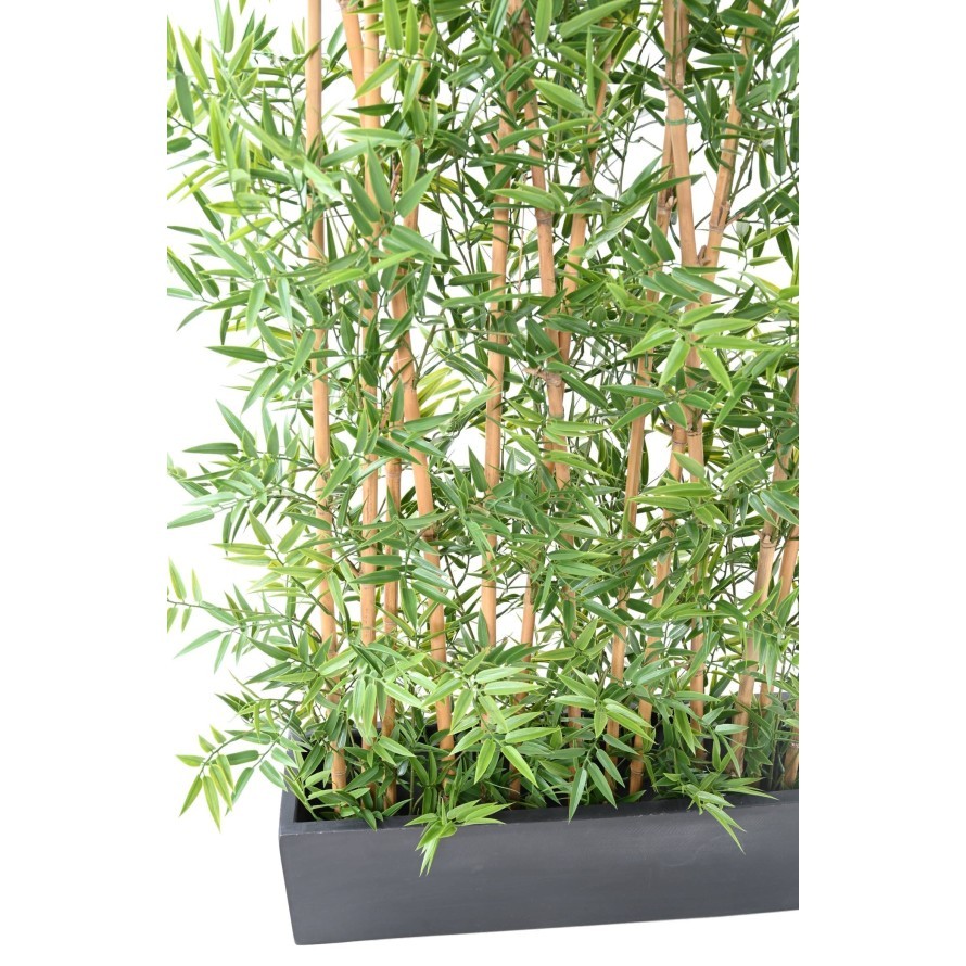 Verwandeln Sie Ihren Aussenbereich mit unserer künstlichen Bambushecke im japanischen Stil. Sie zeichnet sich durch ihre dichte Blattstruktur und 14 robuste Bambusstäbe aus, die fest auf einem 70 cm x 18 cm grossen Holzsockel montiert sind. Eine pflegeleichte Lösung für eine ansprechende, natürliche Optik im Freien.
