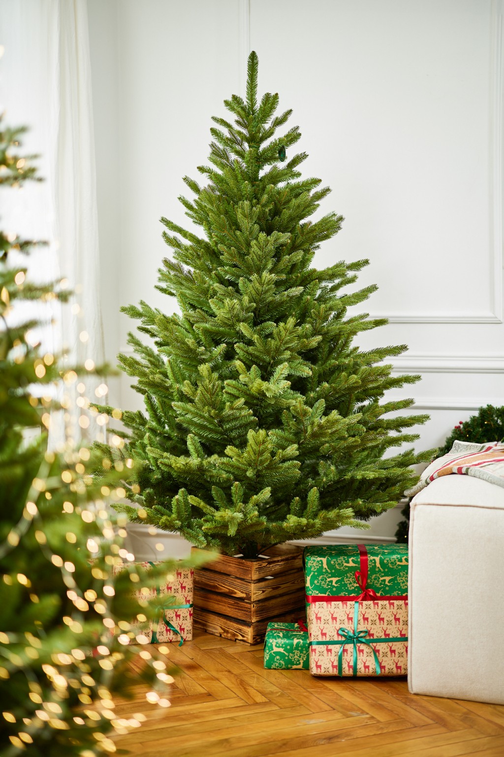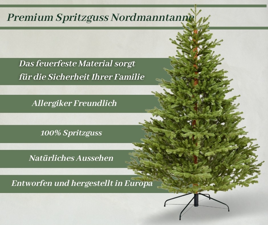 hochwertigen Nordmanntanne mit einer stattlichen Höhe von etwa 210 cm überzeugt. Ihre Nadeln bestehen komplett aus