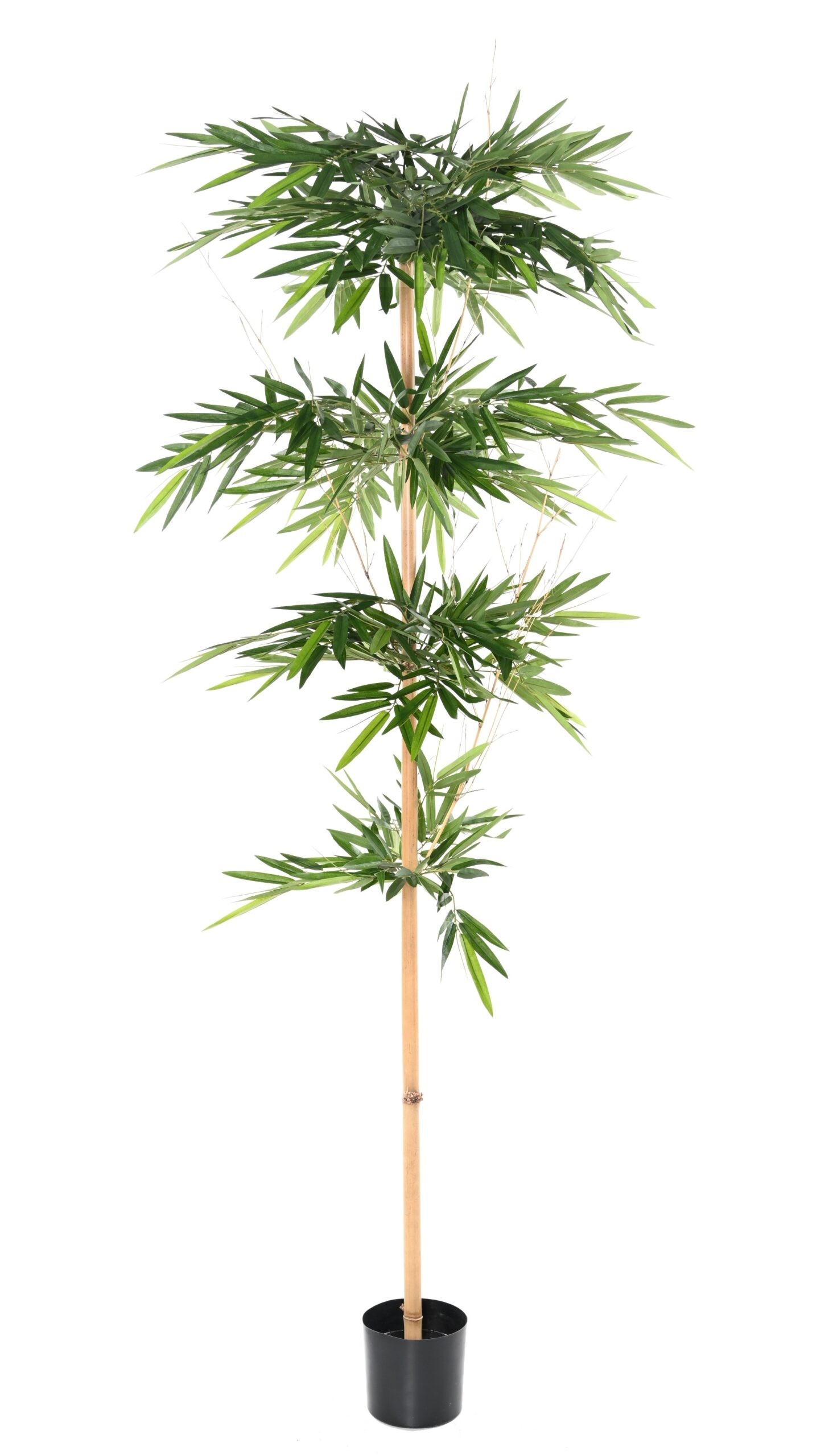 Der künstliche Bambusbaum, wissenschaftlich als Bambusoideae bekannt, ist eine beeindruckende Pflanze, die durch ihre eleganten, schlanken Stämme und die dichte, grüne Blattpracht besticht. Ursprünglich beheimatet in den tropischen und subtropischen Regionen Asiens, bringt dieser Baum eine exotische Note in jedes Interieur. Unsere sorgfältig gefertigte Nachbildung fängt die natürliche Schönheit des Bambus perfekt ein, mit hochwertigen Textilblättern, die in Form und Farbgebung dem Original verblüffend ähneln. Mit seiner stattlichen Höhe und der lebendigen Farbgebung avanciert dieser Baum mühelos zum zentralen Blickfang in jedem Raum.