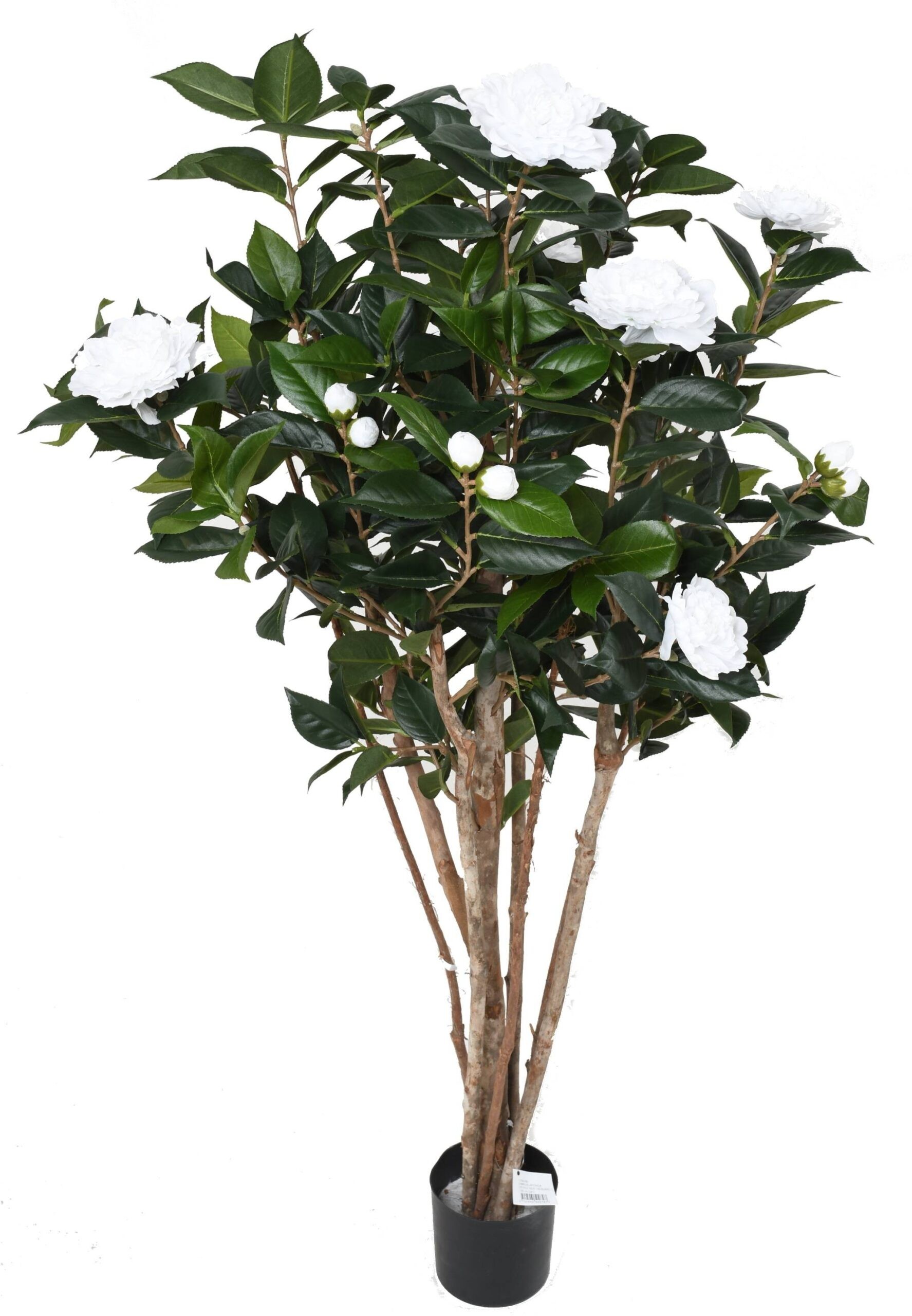 Entdecken Sie die beeindruckende künstliche Kamelie (Camellia japonica), eine Pflanze, die für ihre prächtigen, voluminösen Blüten geschätzt wird. Diese naturgetreue Replikation bringt die zeitlose Eleganz und den Zauber der Natur direkt in Ihre Räumlichkeiten, ganz ohne den üblichen Pflegeaufwand. Ihre strahlend weissen Blüten und die anmutige Wuchsform machen sie zu einer idealen Bereicherung für jede Umgebung.