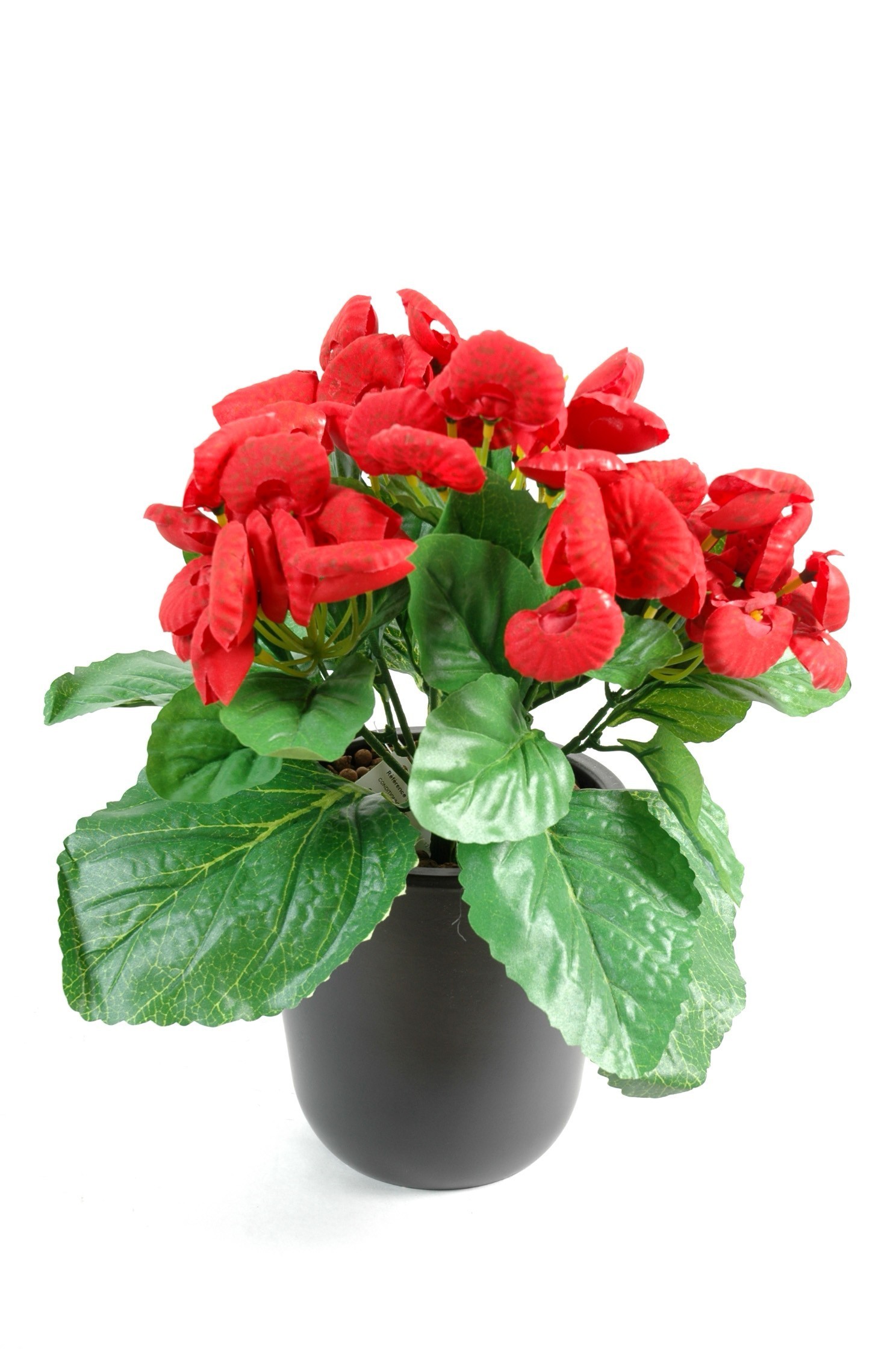 Verleihen Sie Ihrem Ambiente mit der künstlichen Pantoffelblume (30 cm) einen ansprechenden Farbakzent. Diese naturgetreue Replik besticht durch ihre leuchtend roten Blüten und die sorgfältig strukturierten Blätter. Ihre kompakte Statur prädestiniert sie für stilvolle Tischdekorationen, die Verschönerung von Fensterbänken oder als elegantes Element in diversen Blumenarrangements. Erfreuen Sie sich ganzjährig an ihrer Ausstrahlung, völlig ohne Notwendigkeit für Pflege.