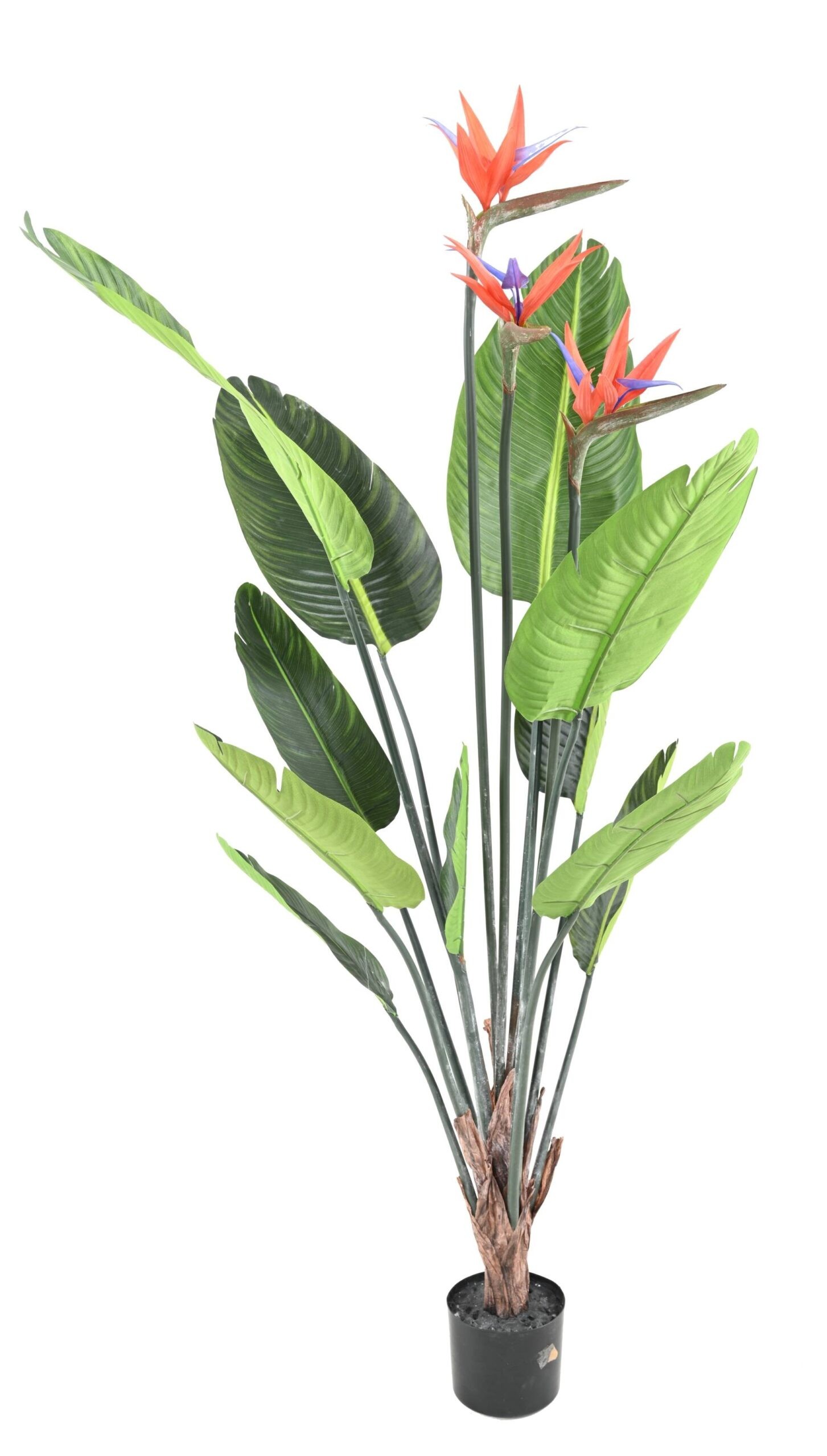 Die künstliche Strelitzie, wissenschaftlich als Strelitzia reginae bekannt und liebevoll Paradiesvogelblume genannt, ist eine bewunderte Pflanze, berühmt für ihre prächtigen Blüten und ausladenden, tropischen Blätter. Ursprünglich aus dem sonnigen Südafrika stammend, bringt diese detailverliebte Replik der Strelitzie ein exotisches Flair in jedes Ambiente. Ihre lebendigen Farben und die äusserst realistische Gestaltung machen sie zur idealen Wahl für alle, die das Ambiente tropischer Gewächse schätzen, jedoch den Pflegeaufwand meiden möchten.
