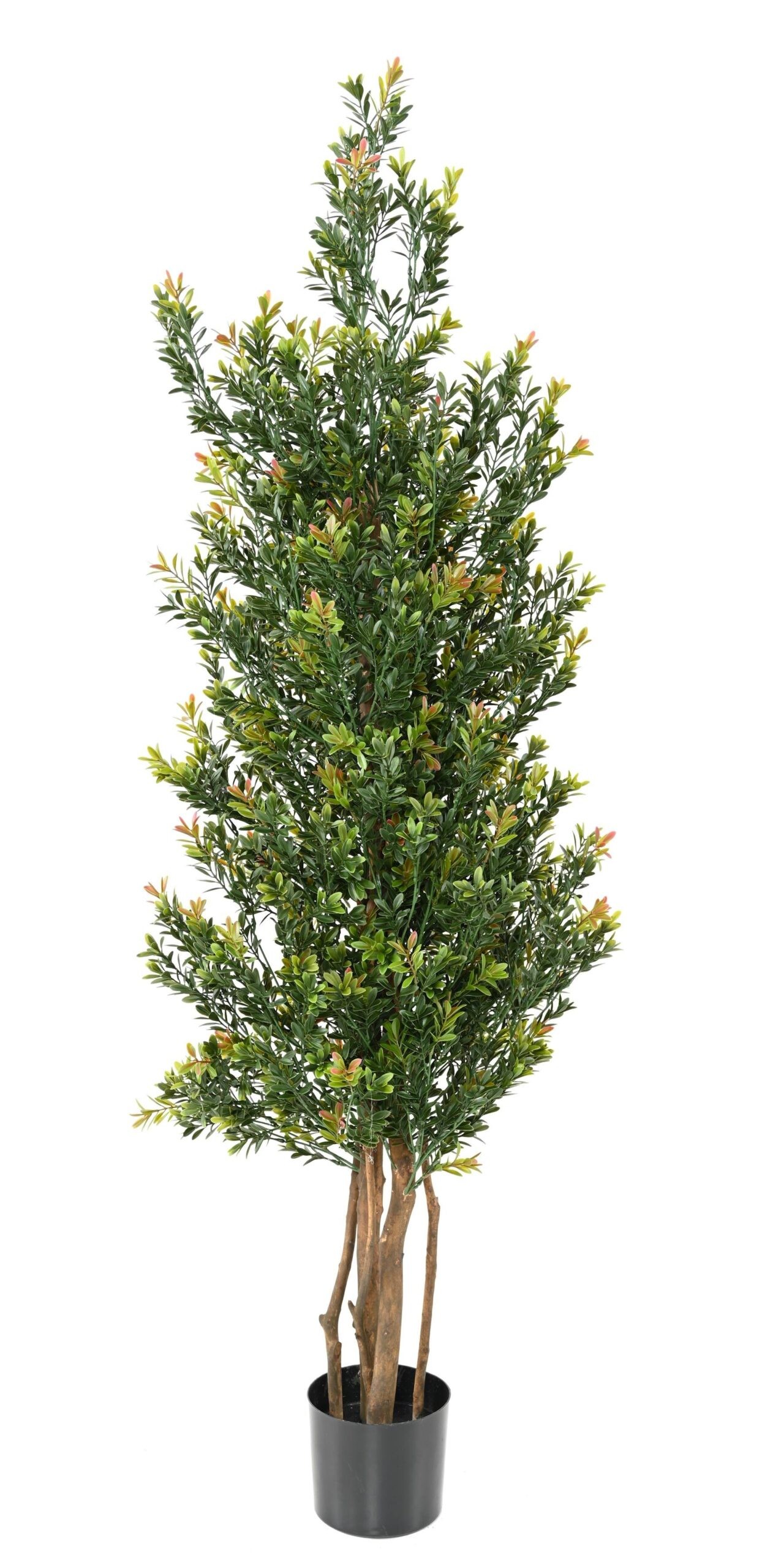 Verleihen Sie Ihrem Aussenbereich eine dauerhaft frische Note mit dem künstlichen Buchsbaum „Red Day“ (Ref: 11543-UV75). Dieser beeindruckende Stammbaum mit einer Höhe von 165 cm überzeugt durch sein detailreich gestaltetes Blattwerk. Die Blätter präsentieren sich in einem satten Grün, kunstvoll ergänzt durch lebendige rote und orangefarbene Akzente, die für eine dynamische Optik sorgen. Dank seiner hochwertigen UV-Beständigkeit ist er ideal für den langfristigen Einsatz im Freien geeignet. Er schafft eine elegante Atmosphäre auf Terrassen, Balkonen oder in Eingangsbereichen, ohne jeglichen Pflegeaufwand.