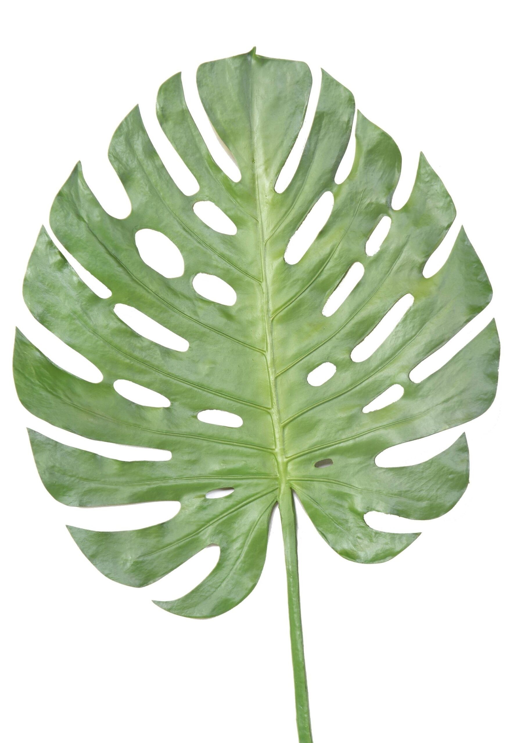 Dieser künstliche Monstera Blattzweig präsentiert sich als detailgetreue Replik eines tropischen Monstera-Blattes. Seine leuchtend grüne Farbe und die unverwechselbare Blattform verleihen jedem Ambiente sofort eine exotische Note. Mit stattlichen 120 cm Höhe und einer Breite von 54 cm zieht dieser Blattzweig alle Blicke auf sich und entfaltet seine volle Wirkung sowohl als Solitär in einer Vase als auch integriert in opulente Gestecke.