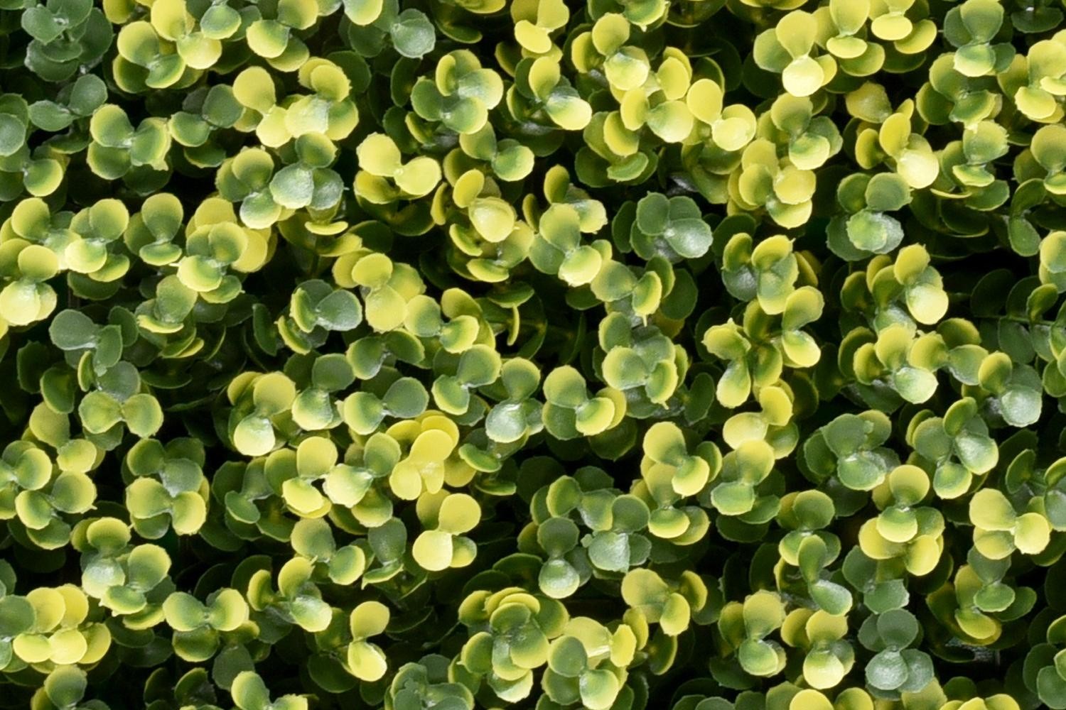 Die Kunsthecken-Paneele von Lina Buxus entstehen aus einem sorgfältig ausgewählten, widerstandsfähigen Material. Diese Materialbeschaffenheit sichert nicht nur eine aussergewöhnliche Beständigkeit, sondern auch eine bemerkenswerte Unkompliziertheit in der Pflege, was sie von herkömmlichen Lösungen abhebt. Ein wesentlicher Pluspunkt dieser Paneele ist ihre exzellente UV-Resistenz, welche eine langfristige Farbstabilität selbst bei starker Sonneneinstrahlung sicherstellt. Sie können sich darauf verlassen, dass die Paneele über viele Jahre hinweg ihr attraktives Erscheinungsbild bewahren. Wir gewähren Ihnen eine umfassende UV-Garantie von 5 Jahren für den Einsatz im Aussenbereich und 8 Jahren für den Innenbereich. Diese Zusicherung bietet Ihnen die Gewissheit, dass Ihre Paneele selbst unter anspruchsvollsten Gegebenheiten ihre optischen und praktischen Merkmale beibehalten. Profitieren Sie von einer langanhaltenden Installation, die minimalen Wartungsaufwand erfordert und jederzeit makellos aussieht.