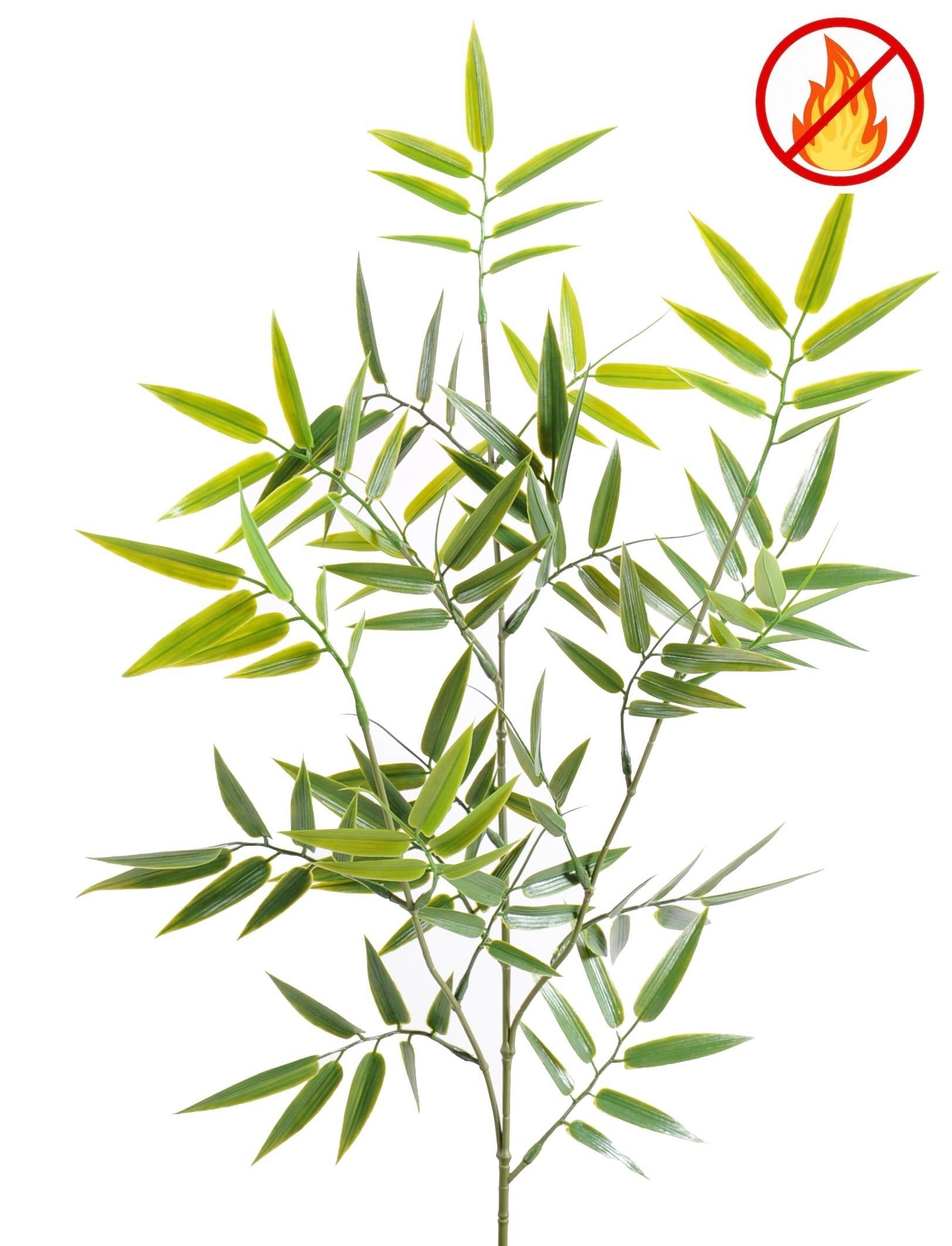 Schaffen Sie eine entspannte, natürliche Atmosphäre mit unserem hochwertigen, schwer entflammbaren Kunst-Bambuszweig Japanisch (70 cm). Dieses ansprechende Dekorationsstück überzeugt durch seine detailgetreue Nachbildung der Bambusblätter und erfordert keinerlei Pflege. Dank der zertifizierten Brandschutzklasse B1/RF2 eignet sich dieser Zweig hervorragend für den Einsatz in öffentlichen Einrichtungen, bei Veranstaltungen, auf Messen oder in Schaufenstern, wo sowohl ästhetische Wirkung als auch höchste Sicherheitsstandards gefordert sind.