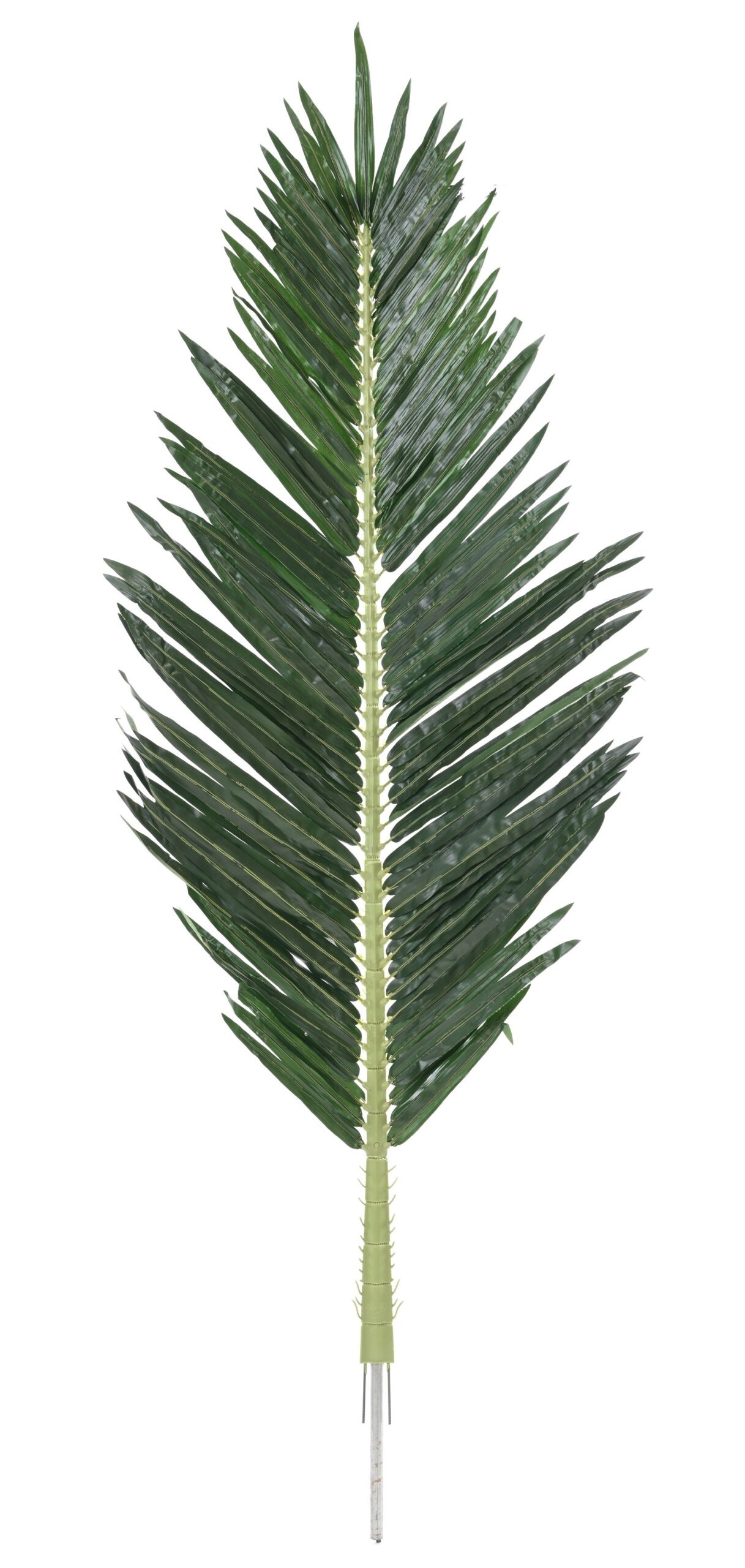 Dieses Kunst-Palmblatt zeichnet sich durch seine bemerkenswerte Dimension und die überdurchschnittliche Verarbeitungsqualität aus. Ein fest integrierter Einsteckstab ermöglicht eine sichere und unkomplizierte Anbringung in bestehenden Stämmen oder individuellen Dekorationssystemen. Die spezialisierte UV-Behandlung garantiert eine bleibende Farbbrillanz, damit Ihre Dekoration über einen langen Zeitraum hinweg ihre Schönheit behält. Es ist die perfekte Wahl für anspruchsvolle Aussenbereiche, die eine dauerhaft attraktive Gestaltung verdienen.