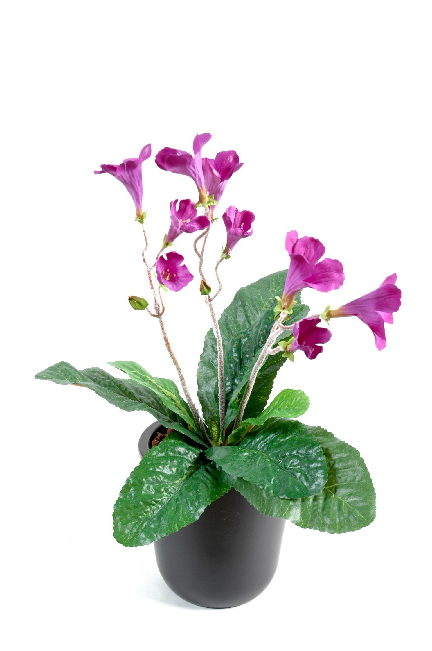 Ergänzen Sie den Streptocarpus ideal mit weiteren Kunstpflanzen oder blühenden Kunstzweigen, um einzigartige und stimmungsvolle Ensembles zu schaffen. So setzen Sie unkompliziert frische und ansprechende Highlights in Ihr Interieur – pflegeleicht, flexibel und stets ansprechend.