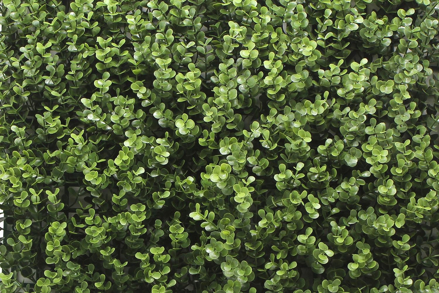 Die Leah Buxus Paneele bestehen aus erstklassigem Polyethylen, einem Material, das für seine beeindruckende Robustheit bekannt ist. Diese bewusste Materialwahl garantiert nicht nur eine lange Gebrauchsdauer, sondern auch einen minimalen Pflegeaufwand, was diese Paneele von anderen Lösungen abhebt. Ein Schlüsselelement ist ihre ausgezeichnete UV-Beständigkeit. Selbst unter starker Sonneneinstrahlung behalten sie über viele Jahre hinweg ihre Farbintensität und Formstabilität, wodurch sie sich perfekt für den Einsatz im Freien eignen. Wir gewähren eine umfassende Garantie von 5 Jahren für den Aussenbereich und 8 Jahren für den Innenbereich, was Ihnen die Gewissheit gibt, dass Ihre Paneele auch unter anspruchsvollen Bedingungen ihre Qualität bewahren.