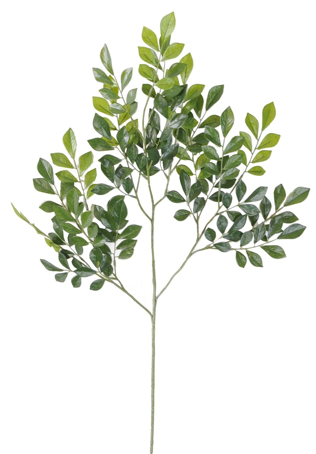 Dieser Murraya-Kunstzweig bietet eine detailgetreue Nachbildung eines tropischen Gewächses. Seine lebendig wirkenden, grünen Blätter aus erstklassigem Textilgewebe verleihen jedem Ambiente eine exotische, frische Note. Mit einer stattlichen Höhe von 70 cm und einem Durchmesser von 35 cm eignet sich dieser Zweig hervorragend für fantasievolle Gestaltungen und florale Dekorationen.
