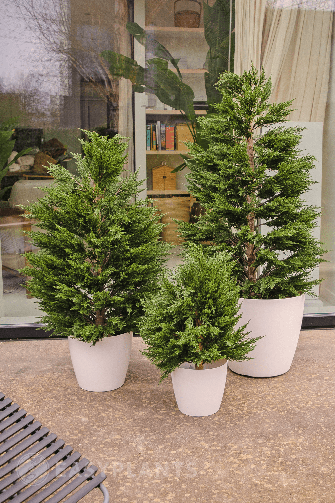 Diese Premium Kunstpflanze Zypresse Thuja, mit ihrer stattlichen Höhe von 120 cm, ist eine ausgezeichnete Lösung, um ungenutzte Gartenecken, Terrassen oder Balkone stilvoll zu beleben. Sie trägt massgeblich zu einer einladenden und entspannten Umgebung bei, die zum Verweilen einlädt.