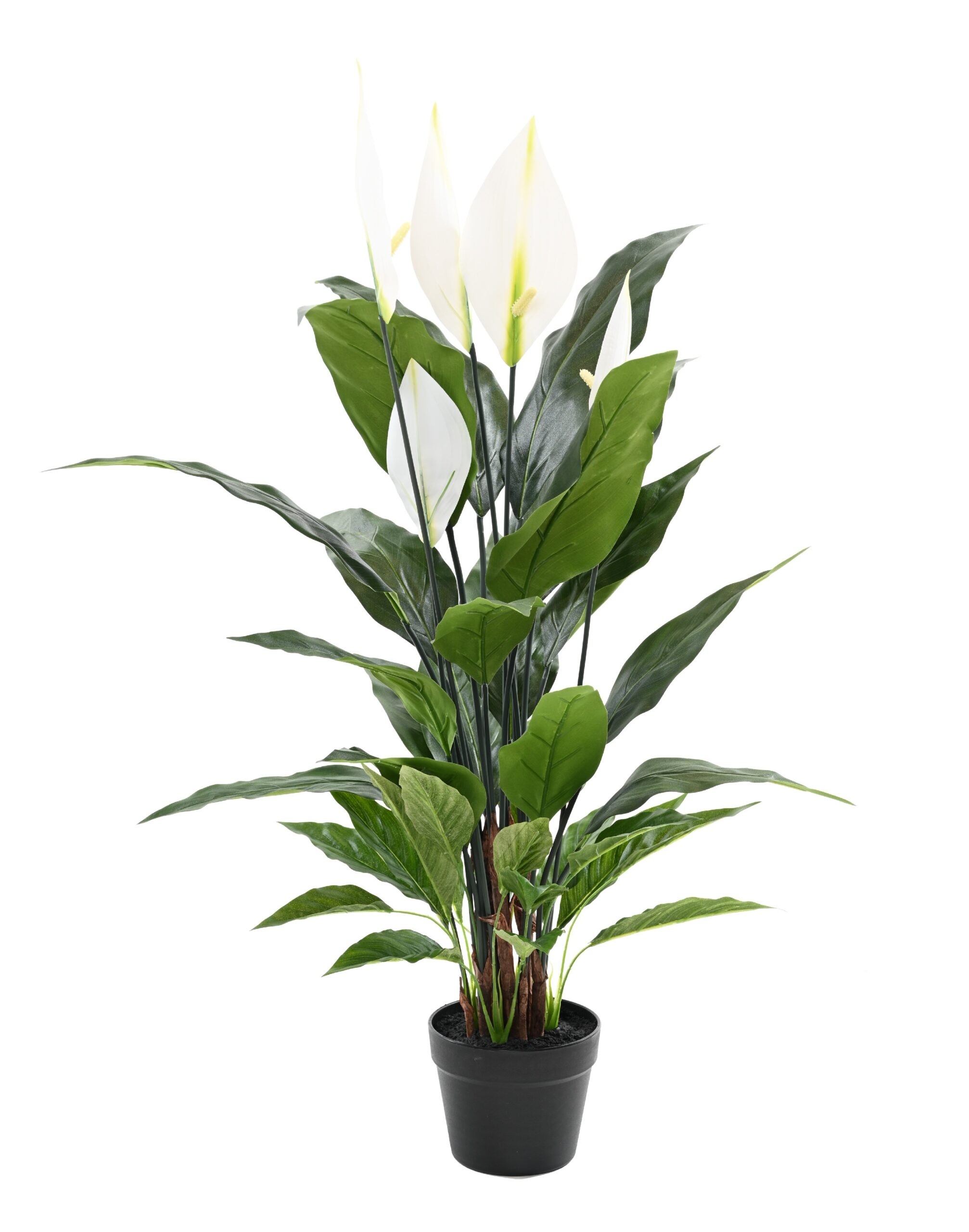 Entdecken Sie die Spathiphyllum, oft als Friedenslilie bezeichnet, eine attraktive und unkomplizierte Kunstpflanze, die jedem Interieur eine entspannende Note verleiht. Ihre anmutigen, weissen Hochblätter und das kräftige Grün der Blätter machen sie zu einem besonderen Blickfang. Sie ist die perfekte Lösung für alle, die das frische Flair von Pflanzen schätzen, aber den Pflegeaufwand einer echten Pflanze vermeiden möchten.